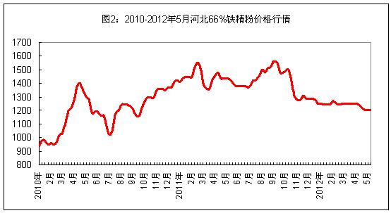 本周國內(nèi)鐵礦石價格穩(wěn)中有降。截止本周四,河北唐山鋼廠65%鐵精粉采購價格保持1200元/噸(見圖2),63%球團礦(回轉(zhuǎn)窯)采購價格為1320元/噸左右。遼寧地區(qū)鋼廠66%鐵精粉采購價格下跌20元至1030-1050元/噸。南方區(qū)域價格相對穩(wěn)定。其中,安徽地區(qū)65%鐵精粉_格保持1180-1200元/噸;湖北地區(qū)63%鐵精粉_格保持1080元/噸左右;山東地區(qū)65%鐵精粉_格下跌10元至1230元/噸左右。進口方面,本周進口礦現(xiàn)貨價格平穩(wěn)運行。北方主要港口63.5%印度粉礦價格1030-1040元/噸(濕噸),58%印粉850-860元/噸;澳大利亞PB粉礦990-1000元/噸,PB塊礦1070-1080元/噸;65%巴粉1080元/噸左右,較上周末下跌10元/噸。本周四,普氏62%品位鐵礦石價格回落2.25美元至145美元/噸(CIF)。近期國內(nèi)鋼廠依然謹慎采購,整體庫存水平不高,其中國產(chǎn)礦庫存多維持在10-20天,進口礦使用比列仍在70%左右,為了降低成本,多使用中低品主流礦。同時,小礦山、選廠開工率較低,大礦山觀望心態(tài)較濃,市場成交清淡。預(yù)計下周國內(nèi)鐵礦石價格將繼續(xù)小幅下跌。